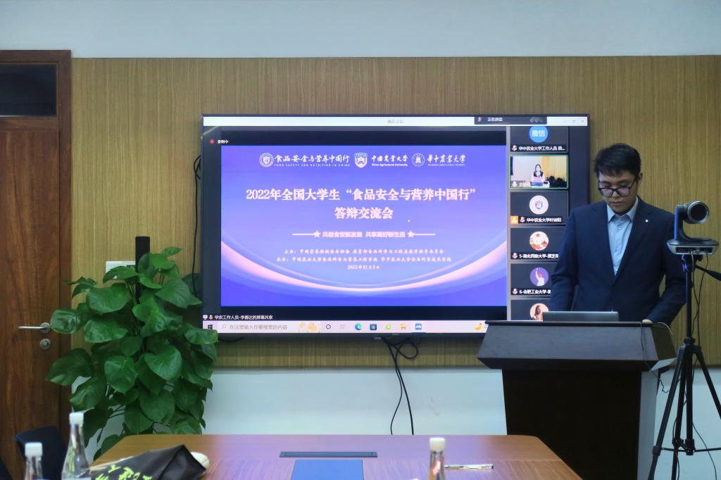 11月3日晚,2022年全国老员工“食品安全与营养中国行”队伍答辩交流会在公司新工科楼122会议室召开。公司党委副书记王从严,党委宣传部常务副部长吴义生,本科生院副经理、校团委书记彭小川,实践教学管理处处长刘震,公司党委书记杨铁贵、经理徐晓云、党委副书记向异之、副经理陈前江出席会议,来自全国33所高校的40支队伍参会。中国营养保健食品协会秘书长张中朋主持会议。