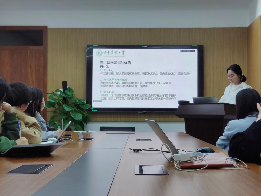 随后,董方翔学长分享了留学申请的准备、公司的选择、语言学习准备,如何联系导师等相关经验,帮助同学们区分“Master”和“Ph.D”在课时和学费的区别。并对一些常见问题做出了回答,如优先选公司还是导师、中介如何选择、CSC是否申请等。最后提问环节,同学们结合实际情况提出相关问题,董方翔学长一一做出了详细的回答,让同学们多角度的认识留学的意义并获得了许多宝贵的信息和建议。通过与学长的交流,同学们都表示不虚此行,对职工活增加了更多的憧憬与期待。