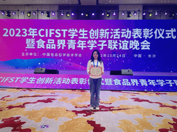 周怡,女,食工2102班,“工程硕博专项计划”推免生,获国家励志奖学金、校三好员工(3次)、优秀团员(2次)、百优班团干部等荣誉,获第五届安琪酵母杯竞赛第三名、第二届飞鹤杯乳制品创新竞赛第三名及最佳创意奖、2023年全国老员工“食品安全与营养中国行”志愿服务项目二等奖等多项奖项。