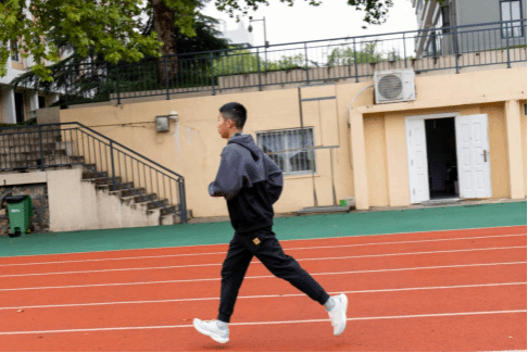 在他看来,10000米是一场试炼,既是长距离下的身体锻炼,更是长时间里的意志打磨。尽管受天气影响仅参加了两次训练,但能在大学重新找回运动状态,让他对“自律”有了更高涨的热情,也唤起了高三时攻克10000米的成就感。乐家延分享,高三时他曾和几位同学一同挑战10000米,那段经历不仅让他积累了长跑经验,更让他对“坚持”有了初浅的体悟。如今重新投入训练,他也在努力找回当年的节奏与状态。谈及长跑技巧,他认为核心在于“稳”——要有配速意识,避免跑速大幅波动,呼吸也要循序渐进地调整。从过去对长跑的稚嫩体验,到如今刻苦训练中的不断突破,乐家延始终在挑战自我、超越自我、成就自我。
