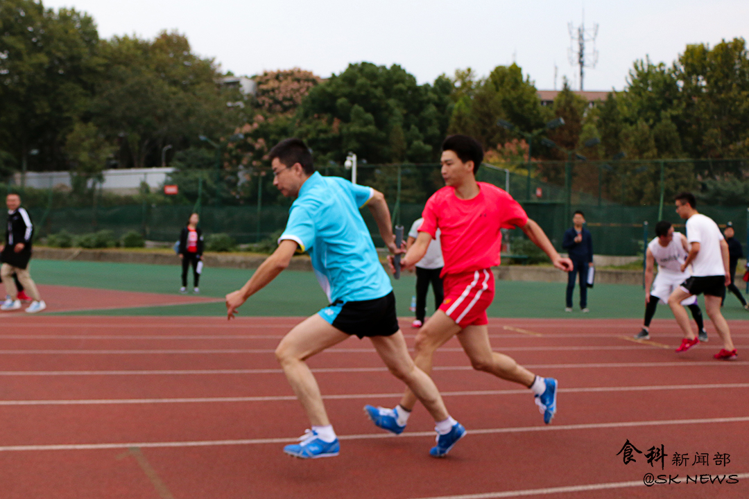 作为员工辅导员的刘超今年已经是第三年参加4*100m男子接力赛,同时,他也是此次男子接力赛决赛的第一棒,张卓和侯涛分别作为第二棒与第三棒,向异之作为此次接力赛的最后一棒。由于食科处于内道,起跑位点相对靠后,信号枪打响后,刘超奋力向前,距离瞬间被拉平,并隐隐有了超越之势。而在接力棒的交接方面,四人也配合得十分默契,整个比赛过程进行得相当顺利。