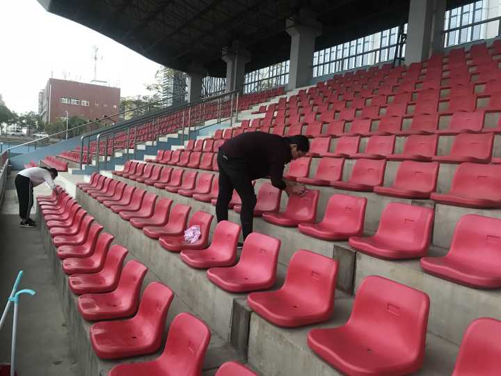 打扫期间,成员们分工明确。由于水源较远,座椅较多,所以,在此次活动中,安排了两名固定的成员进行换水工作,并留下一部分人员擦拭座椅。即便如此,鉴于座椅长期未使用,积尘现象严重,大家多次对座椅进行擦洗,工作量巨大。