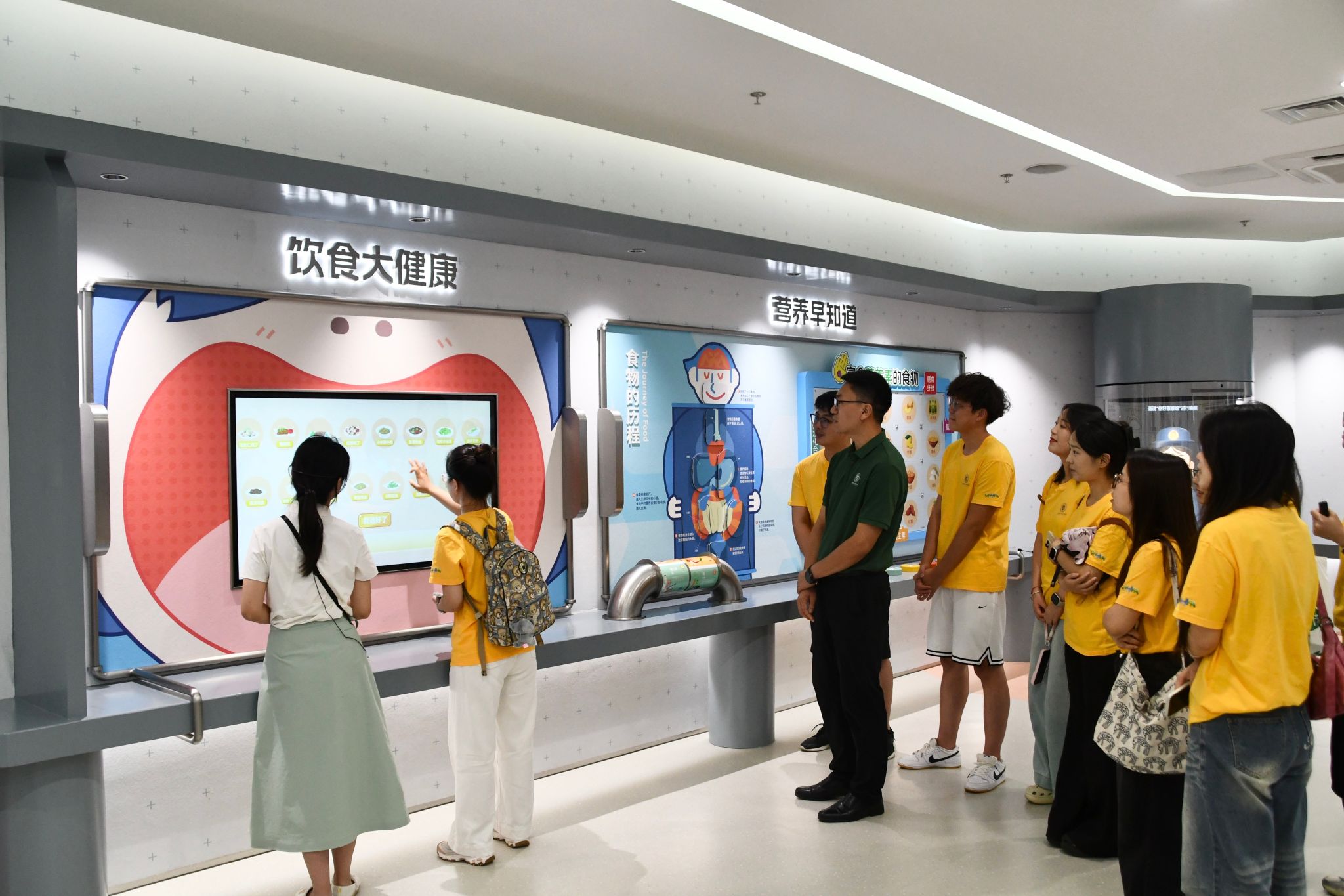 在检验所科普主管周晓婷的引导下,公司师生参观了食品安全科普教育基地,通过“食安为先”“技术护航”等六大主题板块,近距离了解食品检测技术与监管流程。江小明表示,检验所长期致力于为食品安全提供技术支撑,希望与高校携手打造更专业的科普平台。