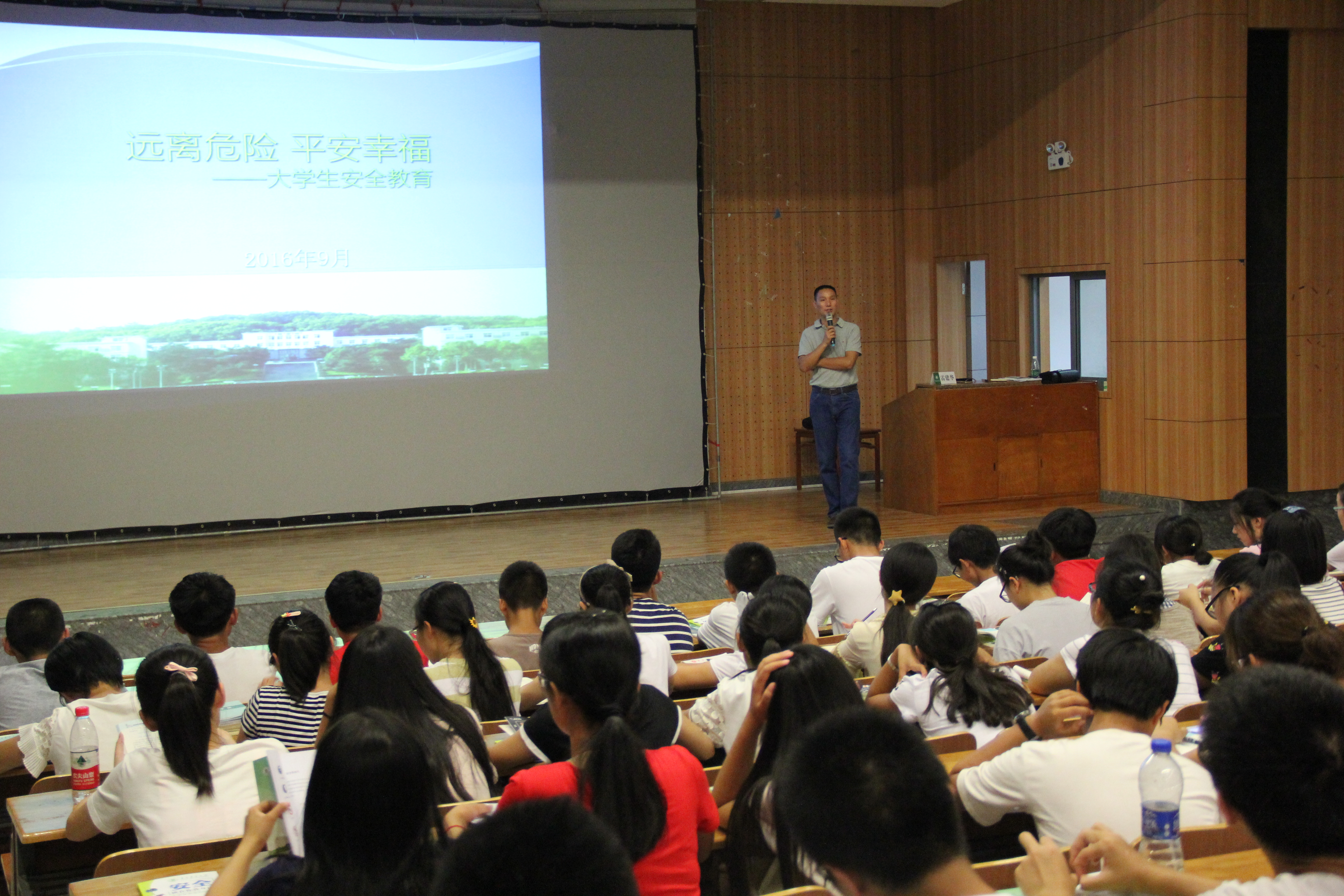 为了提高同学们的法制安全意识,增强防盗防骗知识,共建平安和谐校园,9月1日,食科院安全知识讲座在外语院报告厅顺利举行。公司邀请公司保卫处副处长雷建华老师主讲,食科公司党委副书记向异之、新生辅导员李虎参加讲座。