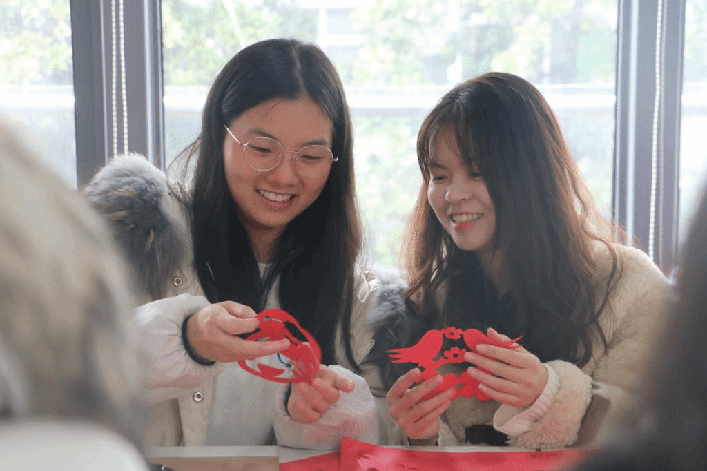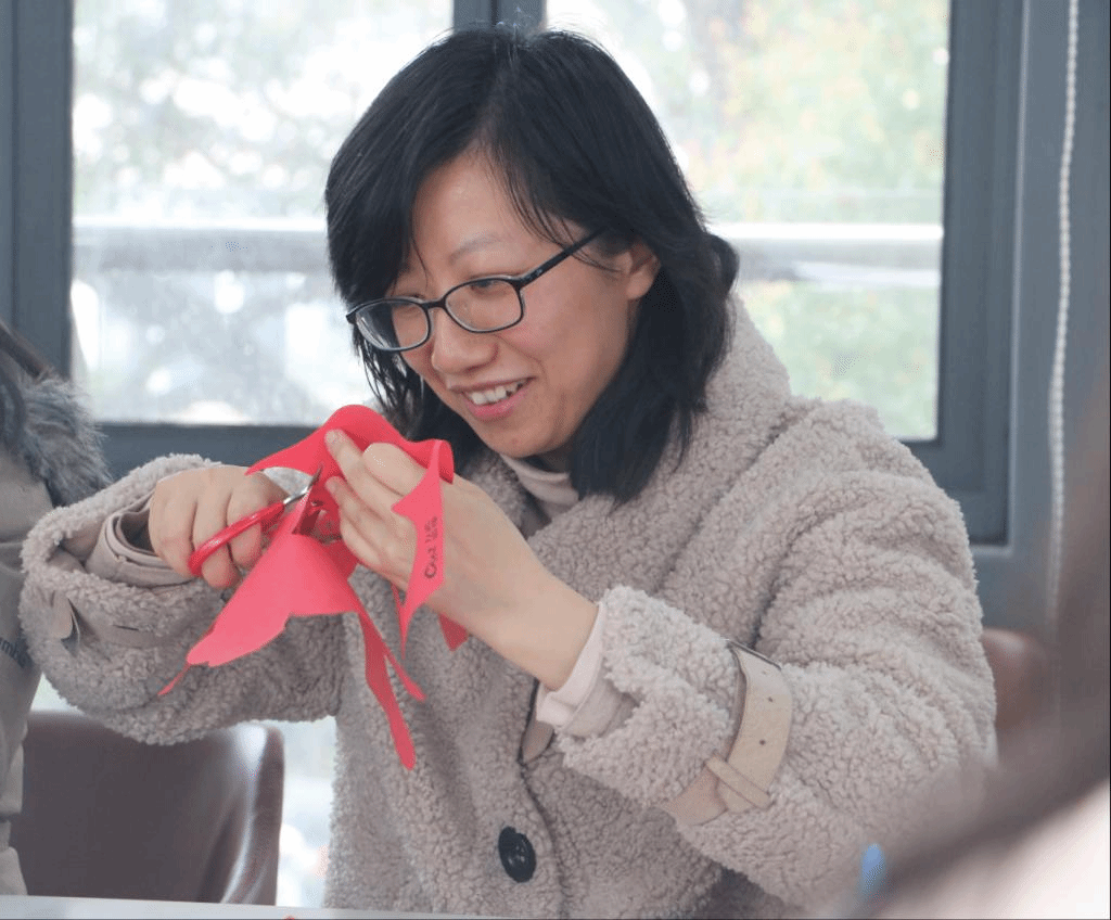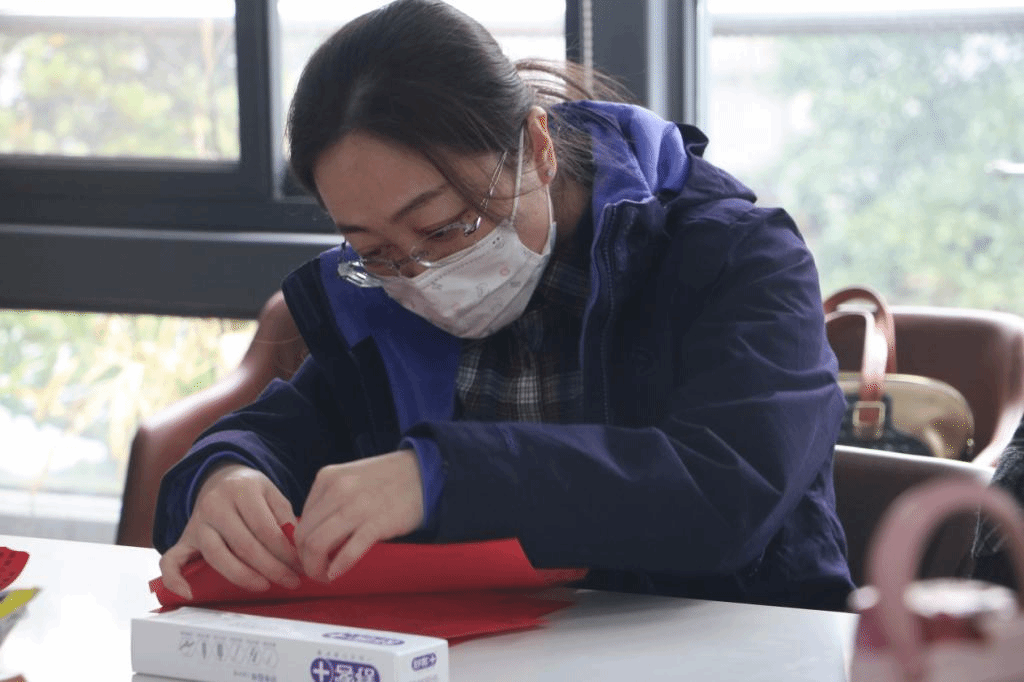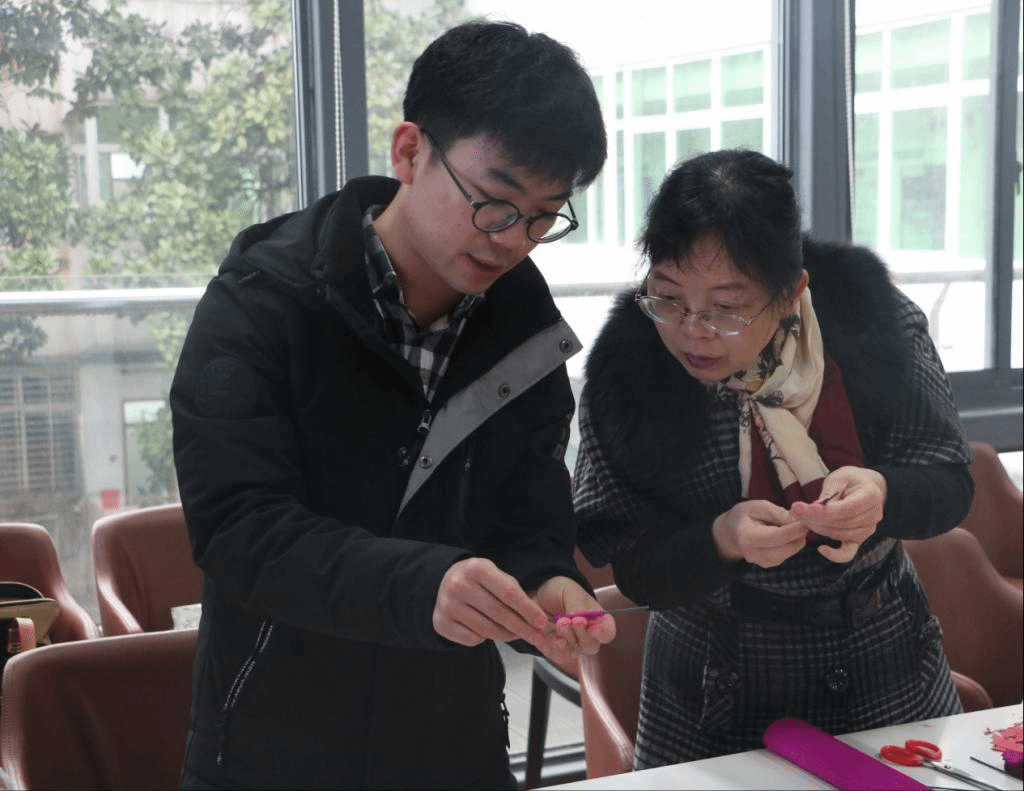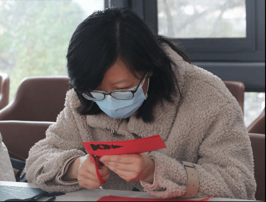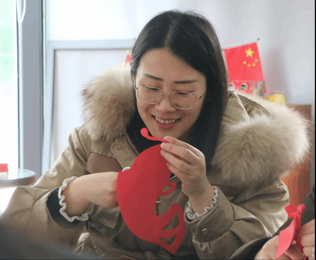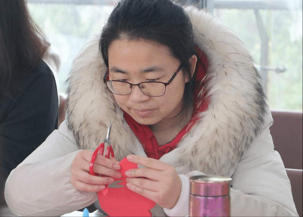 平日工作繁忙,未能抽空好好享受这样悠闲的下午,老师们坐在一起回忆着孩童时期与母亲共同剪纸的温馨回忆。她们的青春就如这红彤彤的剪纸一样热情四溢,她们的青春就如这样盛开的花朵一样娇艳。当她们笑容洋溢享受剪纸带来的快乐时仿佛重新踏上青春的旅途。