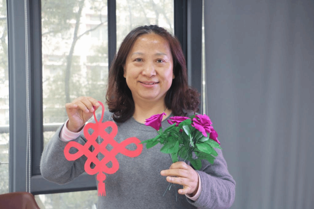 “今天我剪了好多窗花,这个锦鲤剪得最为精致,打算贴在办公室的窗户上,希望能好运相伴呀!”鲁群老师和袁方老师和老师们分享道自己的作品。“听说公司最近有老师好事将近,特意给老师们剪了几个红双喜,美好的祝福要送给他们”荣建华老师开心的说道。“愿每一位美丽的老师都能笑靥如花,永远18岁”,园林公司的晏智同学一边娴熟的制作玫瑰花一边笑着说道。