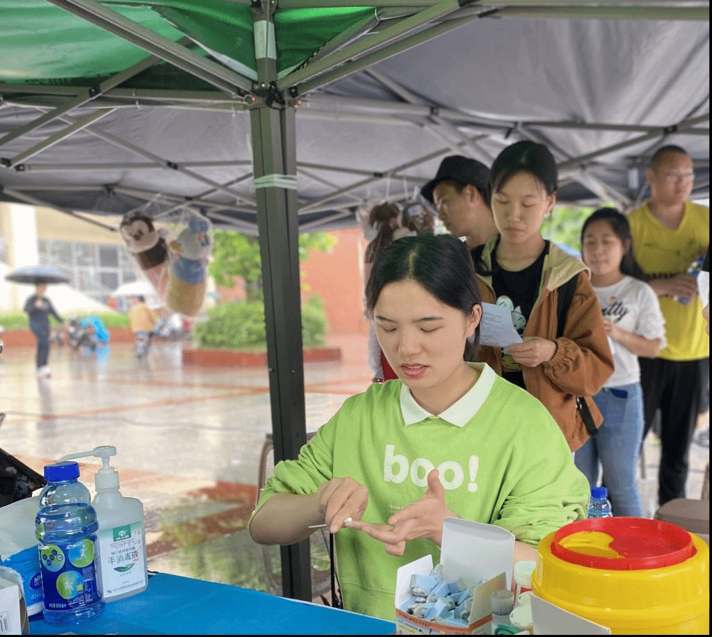 献血活动在雨中持续到下午两点半,四个小时的忙碌把澎湃的爱传递给每一个人。此次献血活动不仅是爱的传递,同时也是青年学子关爱社会,奉献社会的有力印证;是青年党员同志发扬红色传统、传承红色基因,赓续共产党人精神血脉,永远牢记为人民服务宗旨的行动见证。