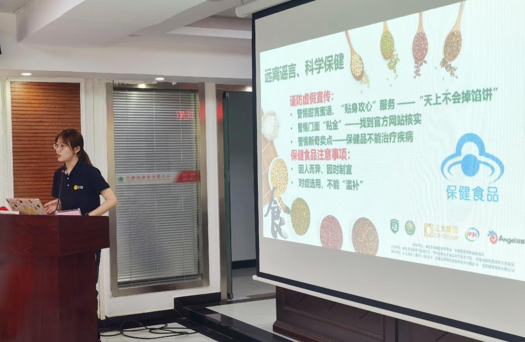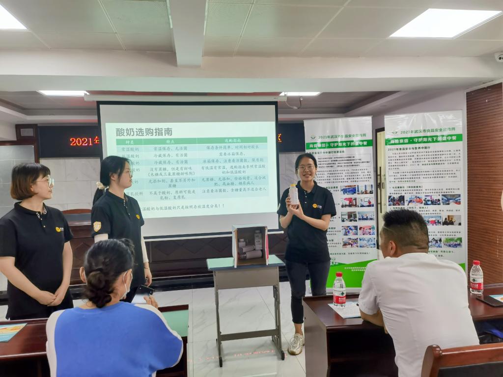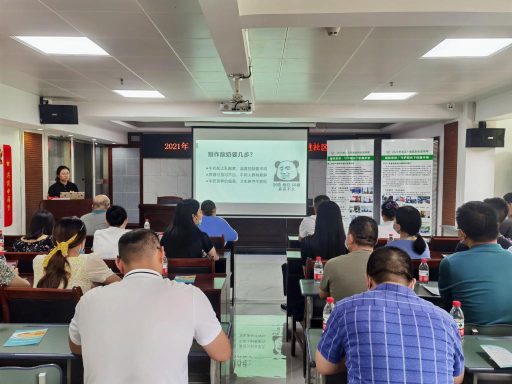 (通讯员 盛丽 供图 陈贵婷)2021年7月15日上午9:30,公司“食品安全与营养中国行”来到了东湖高新区荣芳里社区,以休闲零食为主题,酸奶、活菌饮料为示例开展科普讲堂,本次活动由博士团党建负责人李温蓉主持,东湖高新区市场监督管理局副局长杨宁,食品科柯科长、于科长,九峰街道办事处食品安全工作负责人彭红萍以及荣芳里社区的居民和工作人员到场参加科普讲堂。