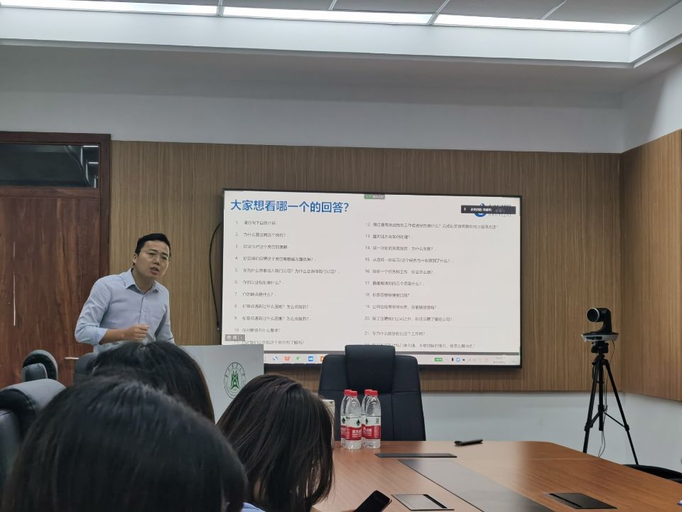 最后公司成立了就业协调小组并对新一年度就业工作进行了培训和部署,张静妍老师以就业市场和渠道、职场环境认知、求职准备和后疫情时代就业认知四个方面为主要内容对就业协调小组展开培训。张老师谈道每年10-11月和3-4月为招聘集中期,也是求职就业最佳时期。目前校园招聘依旧是主渠道但有所弱化,而网申趋势逐渐明显,且通过师兄师姐内部推荐渐成趋势,先实习再签约的现象也有所突出。她还强调毕业生的观念认识也应转变,从“被动求职”应转变为“主动谋职”,在薪酬方面从“自己愿要”转变为“企业能给”。最后张老师强调,面试的核心目标就是让面试官舒服并且喜欢你。