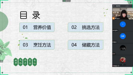 “其次,还要学会如何挑选蔬菜,我们可以通过颜色、形状、气味、完好程度来判断蔬菜是否新鲜安全。”杨晨夕以一种名为“植物肉”的蔬菜——蘑菇给大家举例。在购买蘑菇时,不能听信一些传言来判断蘑菇是否无毒,必须要在有安全保障的正规超市购买无霉变、无腐烂的蘑菇。最后,烹饪时要多选择蒸、煮方法以保留蔬菜的营养物质。