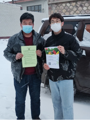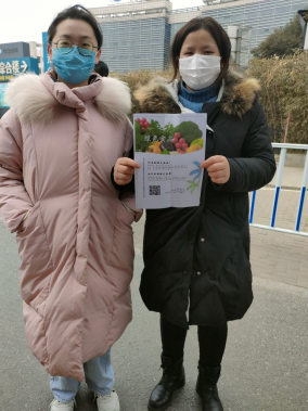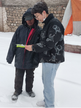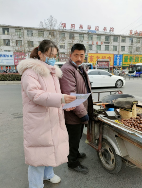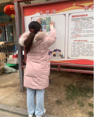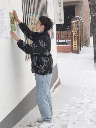 活动开始的这一天濮阳市华龙区长玉社区晴空万里,而黄山口村大雪纷飞,实践团成员郭若彤、黄圣凯分别走进社区活动中心、村民活动中心张贴绿色食品宣传海报,鼓励更多居民扫描“绿色食品认知度”二维码线上填写调查问卷。