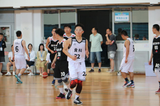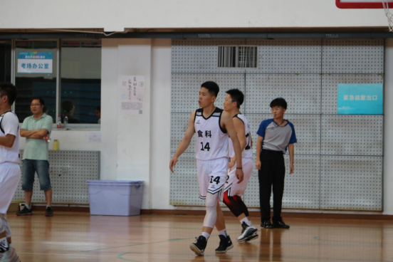 随着裁判的一声哨响,比赛开始,身穿白色队服的食科队员积极跑位,相互配合,10号球员陈众手感火热,连进三分,14号范贺凯化身“篮板守卫者”,为队伍抢下数个关键篮板,22号张墨与13号肖睿恒进攻流畅,接连跳投得分。随着比赛进入到下半场,气氛逐渐紧张,球员屡屡碰撞,对方球员利用我方防守失误连续快攻,我方球员也认真总结比赛经验,加强防守,但由于体能不足,队员们的脚步逐渐沉重,最终不敌工公司、园林公司。