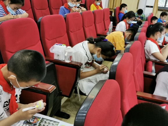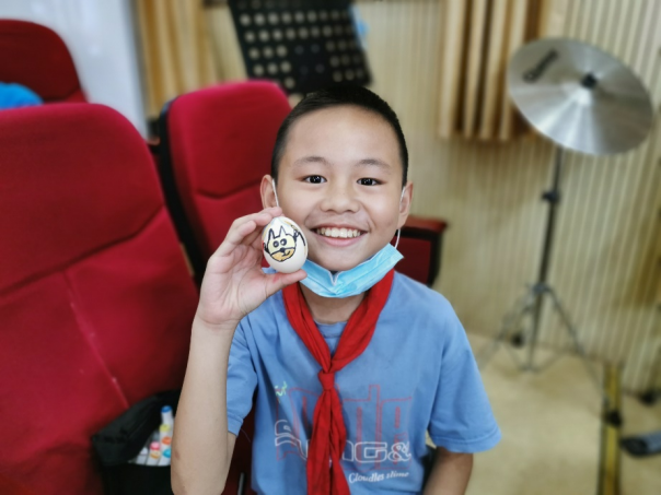 科普讲堂后,志愿者们和老师共同指导小朋友们在鸡蛋壳上进行彩绘,小朋友们都纷纷积极参与活动中来。小朋友们用稚嫩却清晰的笔触,发挥自己的想象力大胆着色,画出心中色彩斑斓的世界,老师也不时在构图和选色等方面给孩子们提出建议,画面其乐融融。其中很多小朋友还主动向志愿者和老师展示自己的作品,分享自己的创意和想法,大家的作品都十分出色。