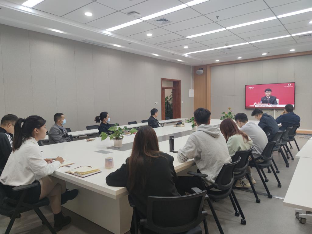 10月24日上午, 中共中央举行新闻发布会,中央政策研究室、中央宣传部、中央改革办、中央政法委、中央办公厅、中央纪委国家监委相关负责人介绍解读党的二十大报告。公司全体领导班子、辅导员、教工党支部书记代表集中收看了发布会现场直播。