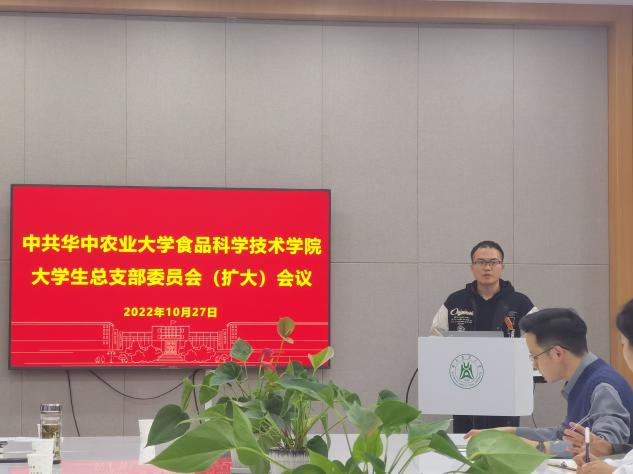随后,本科生第一党支部副书记王嘉诚做学习分享与表态发言,他指出作为青年党员,要牢牢团结在党中央,做好二十大精神学习宣传教育工作,党员自身应做到严于修身,引领示范,知行合一三个方面,同时结合支部工作发表了看法。研究生支部委员和本科生支部委员也针对二十大精神的学习分别发表了个人感悟及看法。研究生第七党支部提到党员要发挥先锋模范作用,积极开展对二十大精神的研学活动。本科生第三党支部支部的同志结合暑期“食品安全与营养中国行”社会实践活动,从专业知识与志愿服务相结合的角度发表了志愿服务感悟。