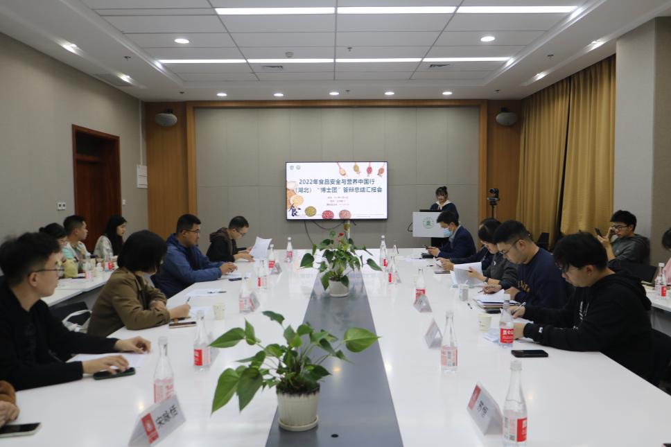 2022年10月28日晚,2022年“食品安全与营养中国行”(武汉)博士团答辩总结汇报会在工科楼122报告厅举行,并通过腾讯会议进行线上直播。中国营养保健食品协会执行副会长厉梁秋、湖北省市场监管局食品安全协调处王芳、武汉市市场监管局食品安全协调处副处长夏艺等多位领导嘉宾及行业代表线上参会。公司党委书记杨铁贵、党委副书记向异之、专业教师代表许燕等应邀线下出席本次会议。