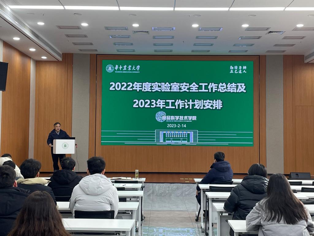 为进一步提升实验室安全治理能力,总结实验室安全工作经验,部署推动2023年重点工作任务,确保新学期实验教学、科研工作顺利开展,公司于2月14日上午在工科大楼103报告厅召开实验室安全工作会议。公司书记杨铁贵、副经理陈前江出席会议并讲话,公司实验室安全员任婧楠老师主持会议。