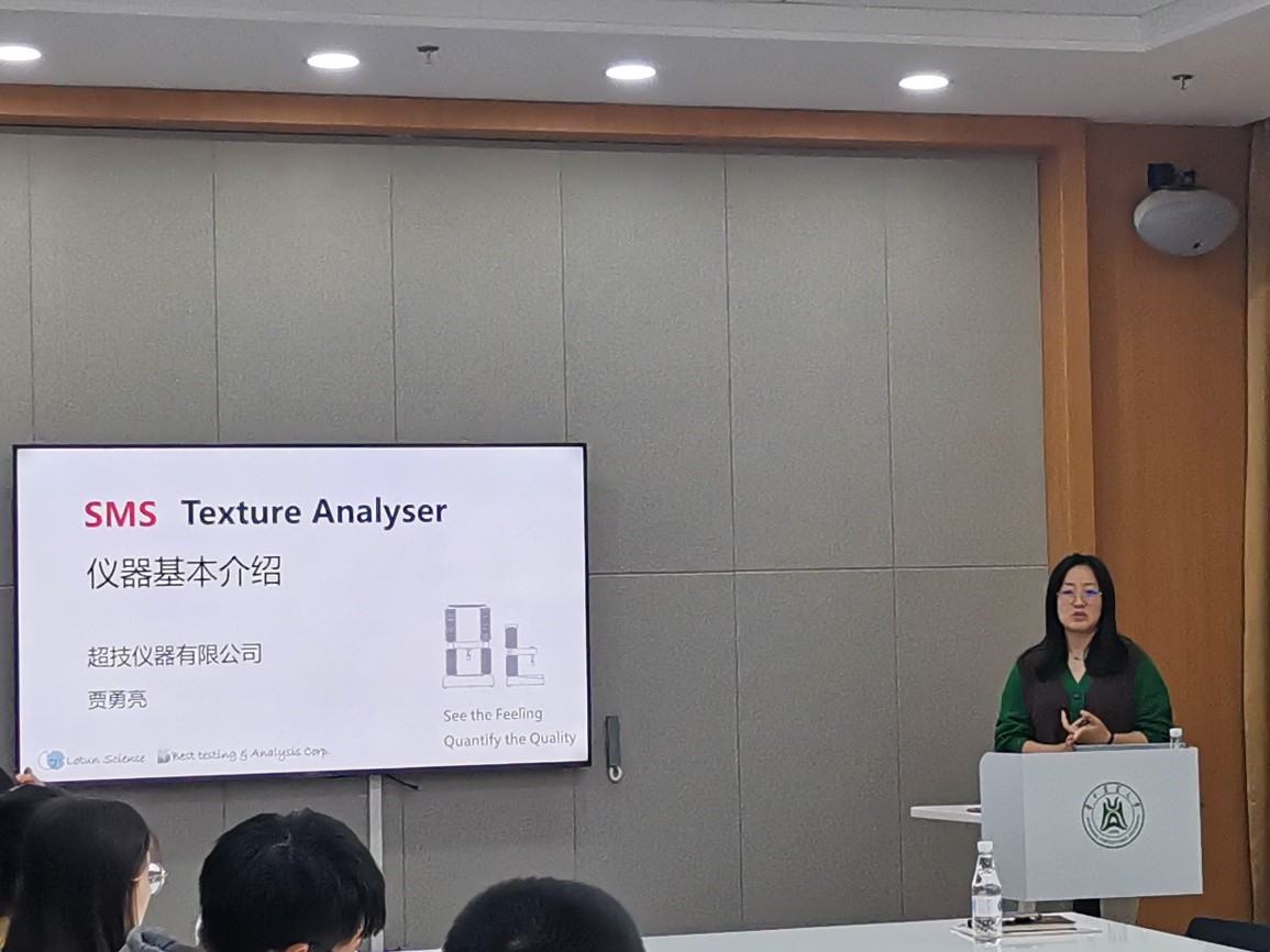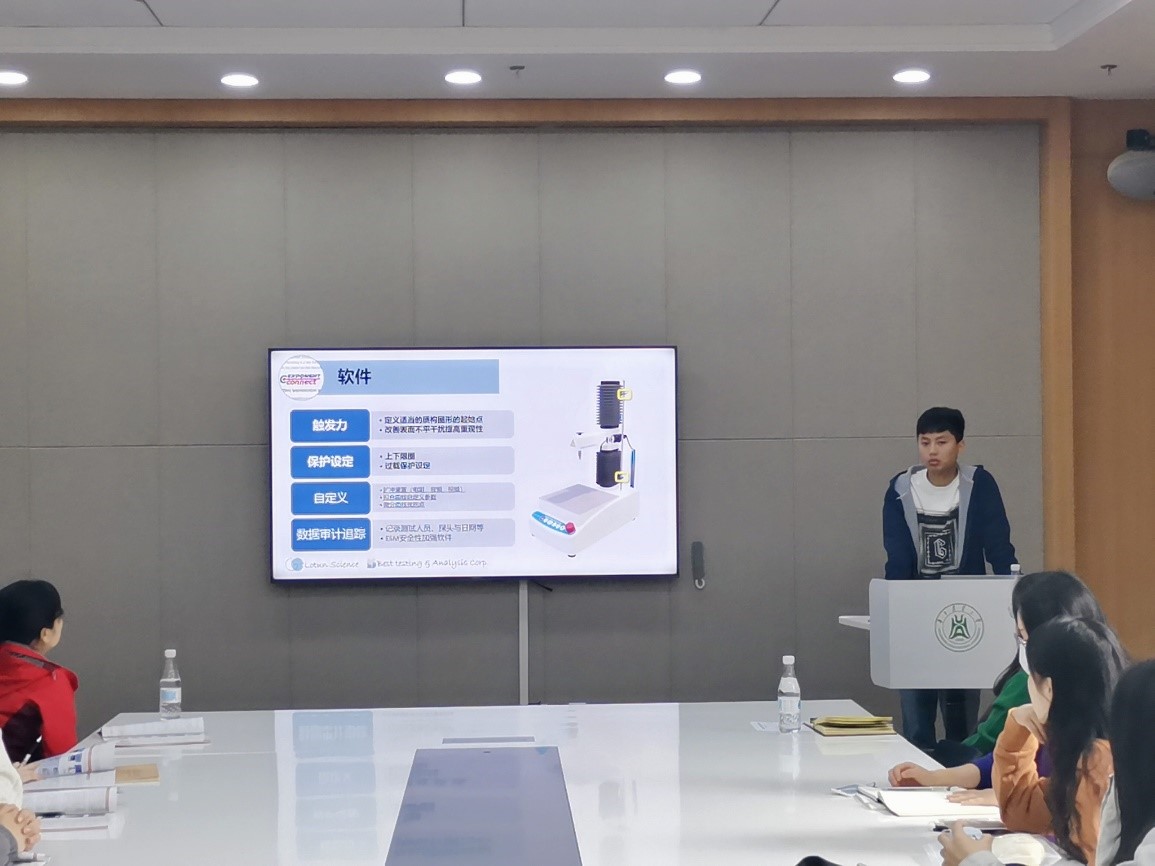 贾勇亮工程师对质构仪的硬件组成和软件做了详细介绍,并对实验过程中设定的各个参数做了逐一说明,为同学们解读了软件应用指南,对测试中模式和探头的选择做了详细介绍,同时对数据导出和测试结果分析也做详细介绍。