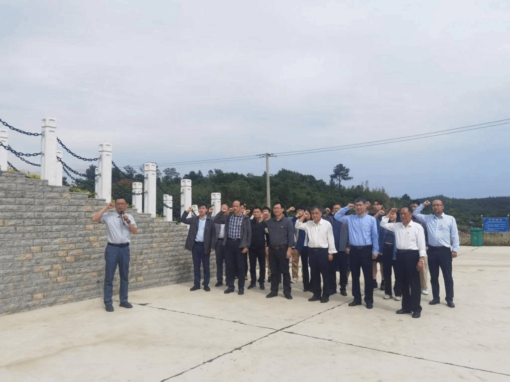 5月22日下午,杨铁贵一行来到了中共荆门县第一个农村支部——红色永盛党支部革命遗址。石桥驿镇文化站站长左心思围绕红色永盛党支部的光荣历史、旧址改建、纪念碑碑文撰写等方面进行了详细介绍。面对庄严的党旗,公司食品科学与工程系党支部书记刘睿组织校镇党员重温入党誓词。随后,杨铁贵一行与石桥驿花园村党支部开展支部联建交流座谈。