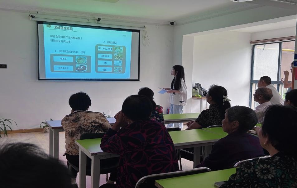 志愿者罗晓宇和单雨萌,首先为大家指出现在食品安全现状最主要的就是食品的质量问题,其中包括一些食品的污染导致食物中毒,还有食品中间搀假食品安全现状与事故。其次列举了几例家庭中常见的食物中毒事件,比如:米酵菌酸“酸汤子”事件,亚硝酸盐、黄曲霉毒素、龙葵素食物中毒事件等。紧接着介绍了各类食品安全消费误区,比如纯天然食品并不一定就是安全的,含有人工食品添加剂的食品并不一定不安全;最后为如何选择安全食品提供了多条建议。从而极大提升了居民日常生活中的“大健康”食品意识。