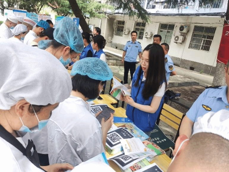 2023年6月29日上午,在汉阳区食品药品安全委员会和市场监督管理局的联合主办下,伟德官网“食品安全与营养中国行”博士科普团走进武汉船舶职业技术公司,开展了主题为“食品安全 共同缔造”的食品安全知识科普宣传活动,为公司员工及公司餐厅工作人员介绍食品安全的重要性、食品安全相关法律法规以及常见的食品中毒和预防措施,帮助他们提高食品安全意识。汉阳区发改局、卫健局、教育局、商务局、城管委以及晴川街道等相关单位均参加了此次食品安全宣传活动。
