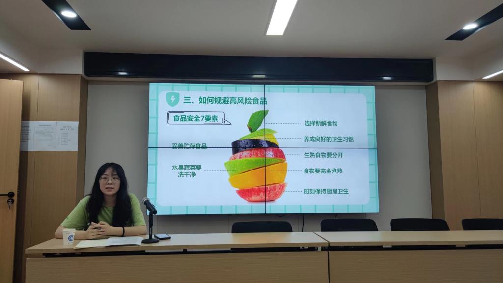 活动开始,志愿者戴翠红从“高风险食品的界定范围”、“高风险食品的类别”、“规避高风险食品的小技巧”三个部分围绕夏日高风险食品展开科普宣讲。戴翠红告诉居民们:“食物本身无害,但若错误食用,一不小心对我们就是致命的危险。例如:水果水分活度高,极易腐烂变质,全腐烂或仅腐烂一部分的水果都是不能吃。”随后,戴翠红为居民们分享了食品安全的七要素来规避夏日高风险食品,严格遵守食品安全七要素,为我们的健康安全保驾护航。