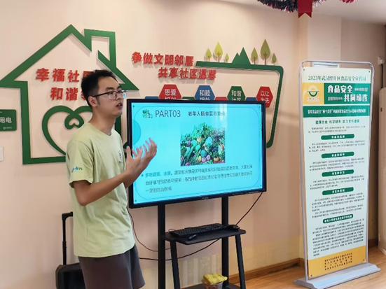本次活动由科普团志愿者曹雍作为主讲人,他从“食品安全、食品营养、科学健身”三个方面,生动形象地讲解了老年人如何去关注日常生活中的饮食安全与身体健康问题。