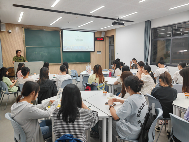 在23级专博班班会现场,班主任魏雪团老师向博士新生们分享了他个人对于学术发展的看法。他指出,博士阶段的学习将更具挑战性,要从“听、看、想、做、写、说”六个方面练就好本领,要将“德”字落实并贯穿于自己的学习生涯中,拥有良好的心态,处理好人际关系,实现自我能力的提升。最后,魏老师预祝博士新生们在未来几年里取得好的成绩,顺利毕业。