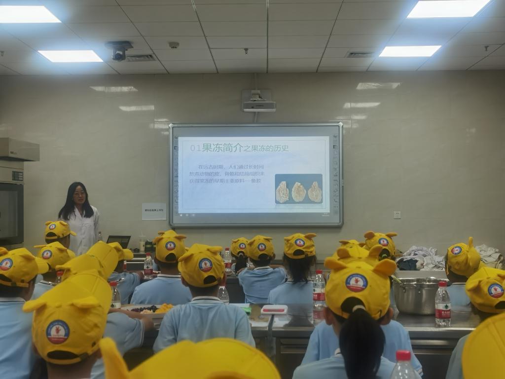 首先,食科院任婧楠老师向小朋友们介绍了果冻的发展史、选购原则以及制作过程等。