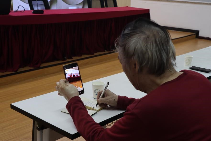 健康宣讲中,博士团讲师黄梓君分别就老年人膳食指南、学龄儿童膳食指南、如何健康吃零食三个方面展开详细讲解,爷爷奶奶们都听得津津有味,有的还不时用手机拍下主讲人讲解的重点知识和精彩瞬间,有的拿出纸笔认真做起了笔记。
