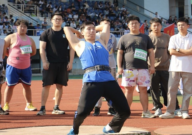 紧接着来到男子实心球决赛现场,一直保持男子实心球记录的李梓豪学长备受瞩目。经过三轮的激烈角逐,最终摘得第一名的桂冠。