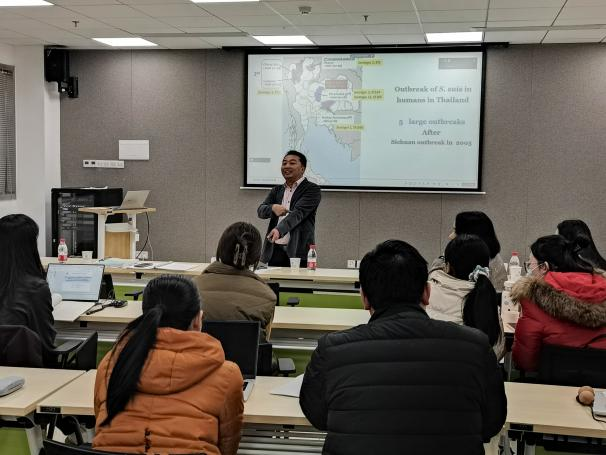 Anusak Kerdsin(副教授,Kasetsart大学公共卫生公司博士)的报告主题是猪链球菌:分子流行病学与社会文化因素。Anusak Kerdsin说:”他在泰国进行了关于猪链球菌感染和人类流行病学的研究超过10年,发表了关于这种病原体的出版物和超过35篇论文。”他的研究分享了引起的人类感染、猪链球菌的检测和分型、流行病学特征和预防控制方面的知识。