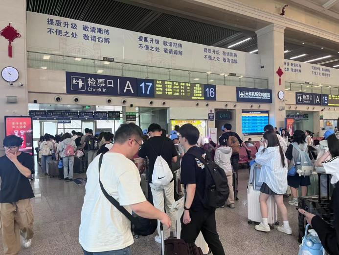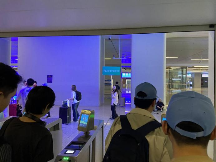 员工们排队检票乘坐高铁