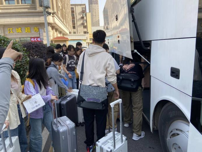 清晨,阳光透过校园的树叶,洒在同学们的脸上,映照着他们充满期待与兴奋的脸庞。同学们整齐地排列在校门口,准备启程前往襄阳校区。随着出发时间的临近,师生们纷纷背起背包,拎起手中的行李,向大巴车走去。每个人脸上都洋溢着激动的笑容,谈论着对襄阳校区的期待和好奇。大巴车缓缓驶来,师生们有序上车,找到自己的座位,准备开始这段旅程。