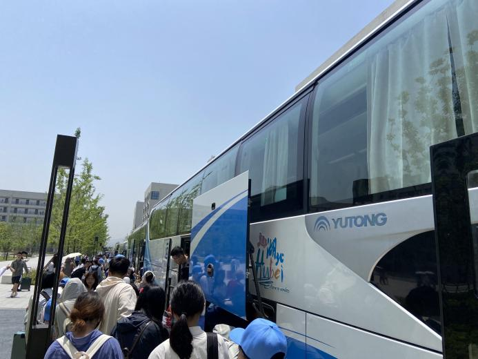 员工乘坐大巴前往高铁站