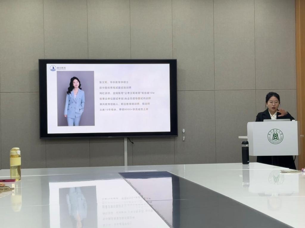 10月25日下午,公司在新工科大楼122会议室成功举办了一场针对武汉市选聘生招考及国考考情的分享会。本次会议特邀乘风教育的公考名师张文莉,为食科院学子深入解析考试内容,提供专业指导。
