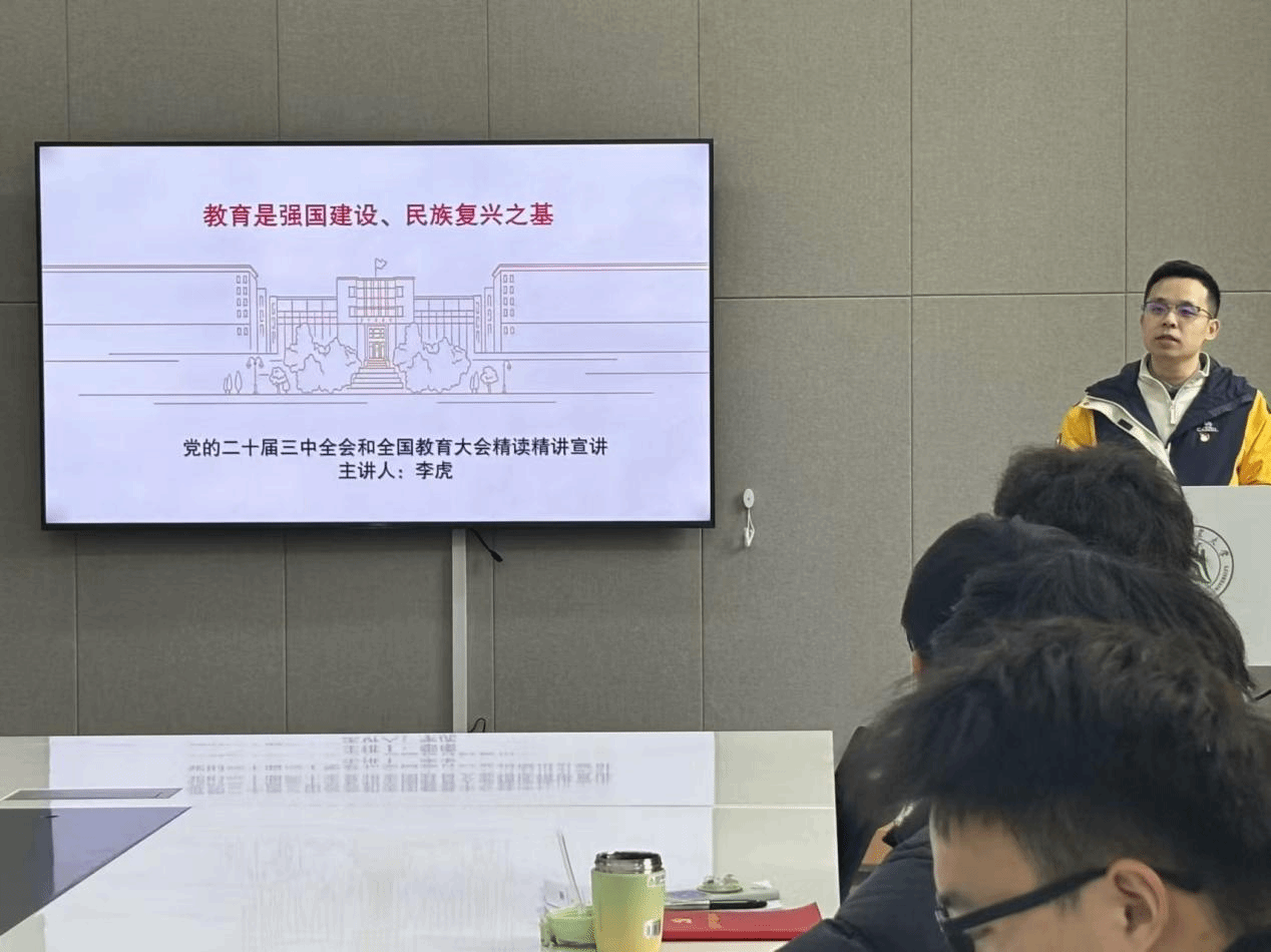 为深入学习贯彻党的二十届三中全会精神和全国教育大会精神,12月8日下午,伟德官网本科生第三党支部在新工科楼225会议室举行“精读精讲”专题党课。公司宣讲团成员、伟德官网辅导员、本科生第三党支部书记李虎面向支部全体党员开展宣讲。