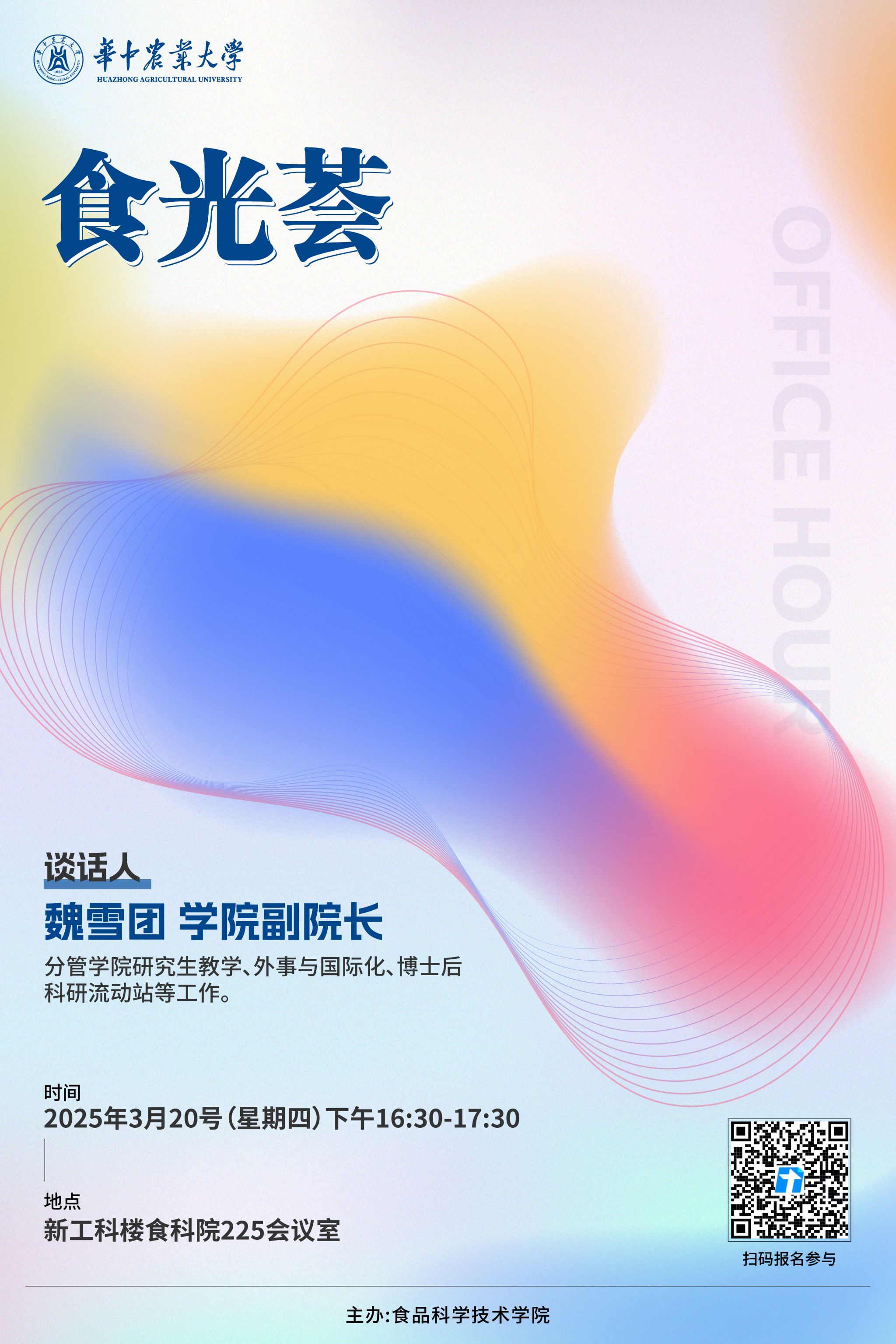 伟德官网第二期“食光荟-与院领导面对面”交流活动即将举办,本期活动邀请公司副经理魏雪团作为主讲嘉宾出席。