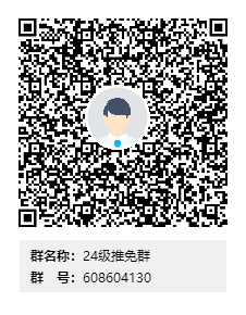 公司根据申请人情况,对申请人提交的材料进行评审,审核通过的考生请加入公司2024级免推考核QQ群:608604130。群二维码请见附件1。